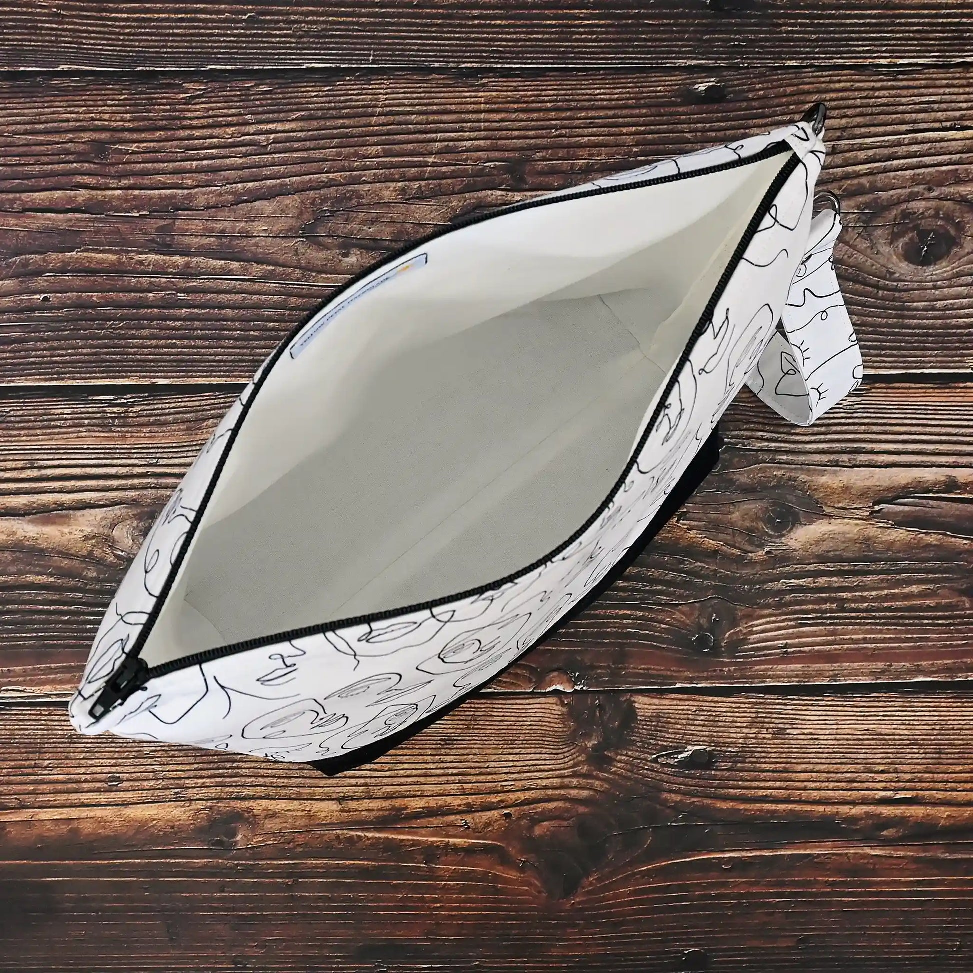 Black and White Project Bag with Line Drawn Faces