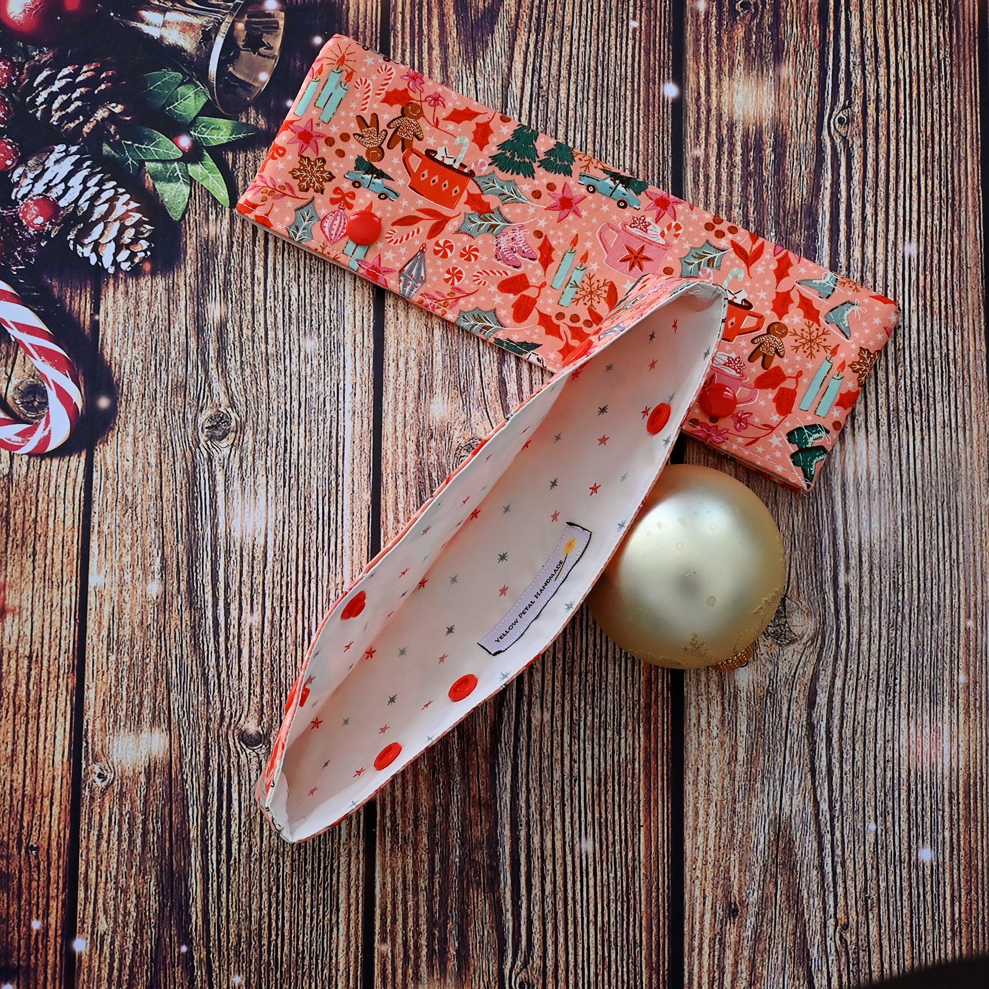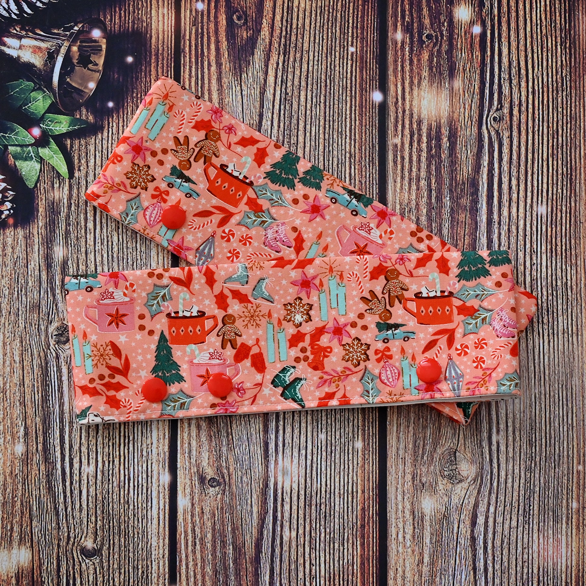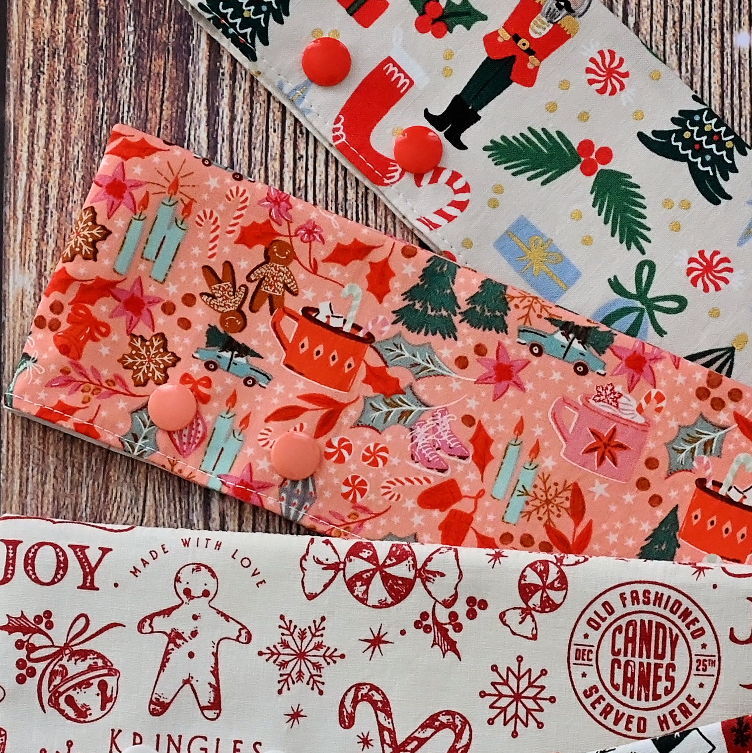 The perfect stocking stuffer for the knitter in your life!  These cozies are great little WIP holders for DPNs or circular needles.  They secure your work and keep it from slipping off your needles.  These work well for small projects on DPNs, keeping everything in place while you're transporting your project.  They're also are great for keeping your larger projects on circular needles safe and secure - just pop your needles in the cozy when you've finished knitting and snap it closed to keep everything in place.