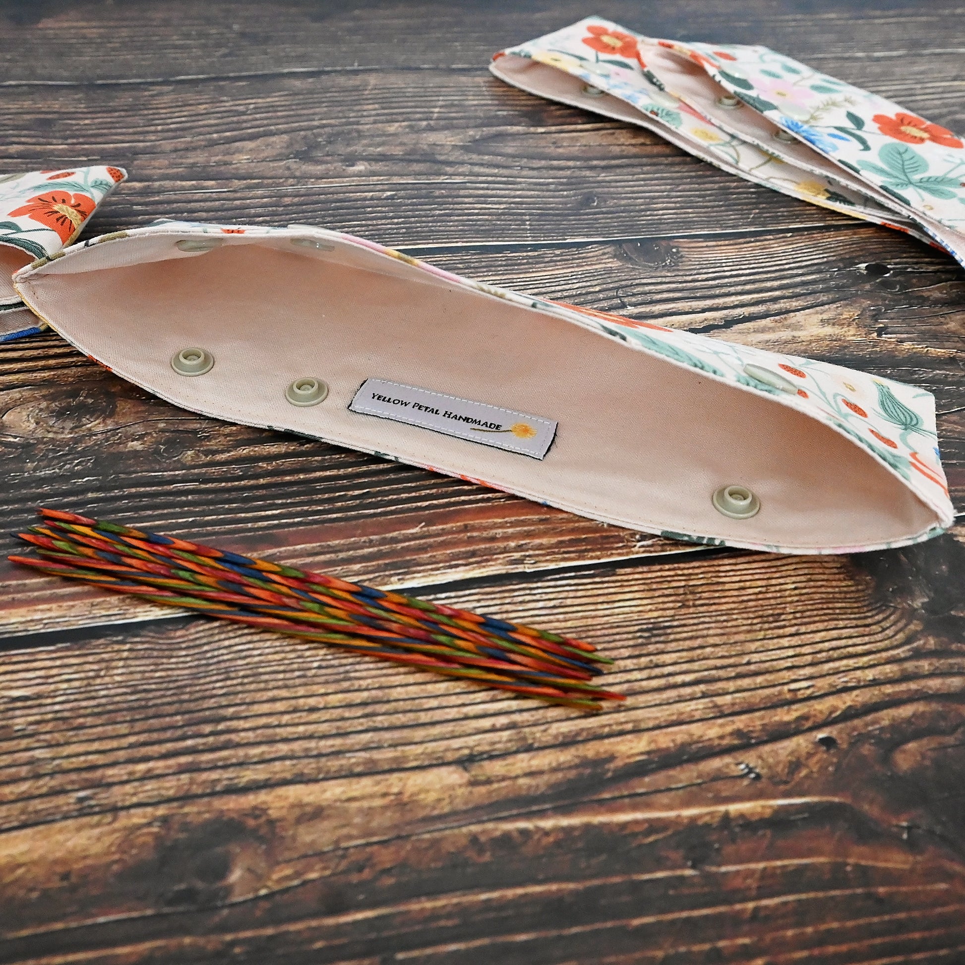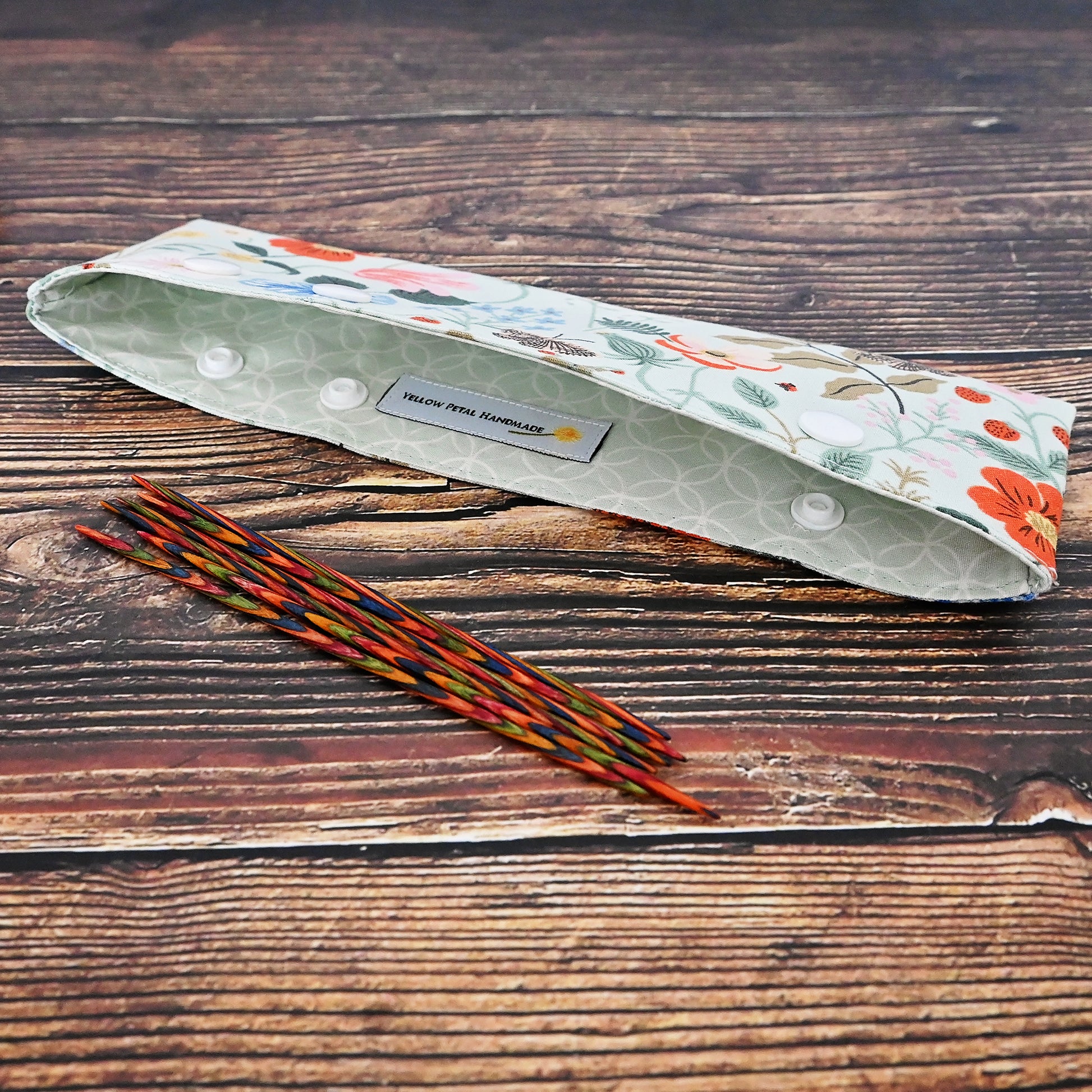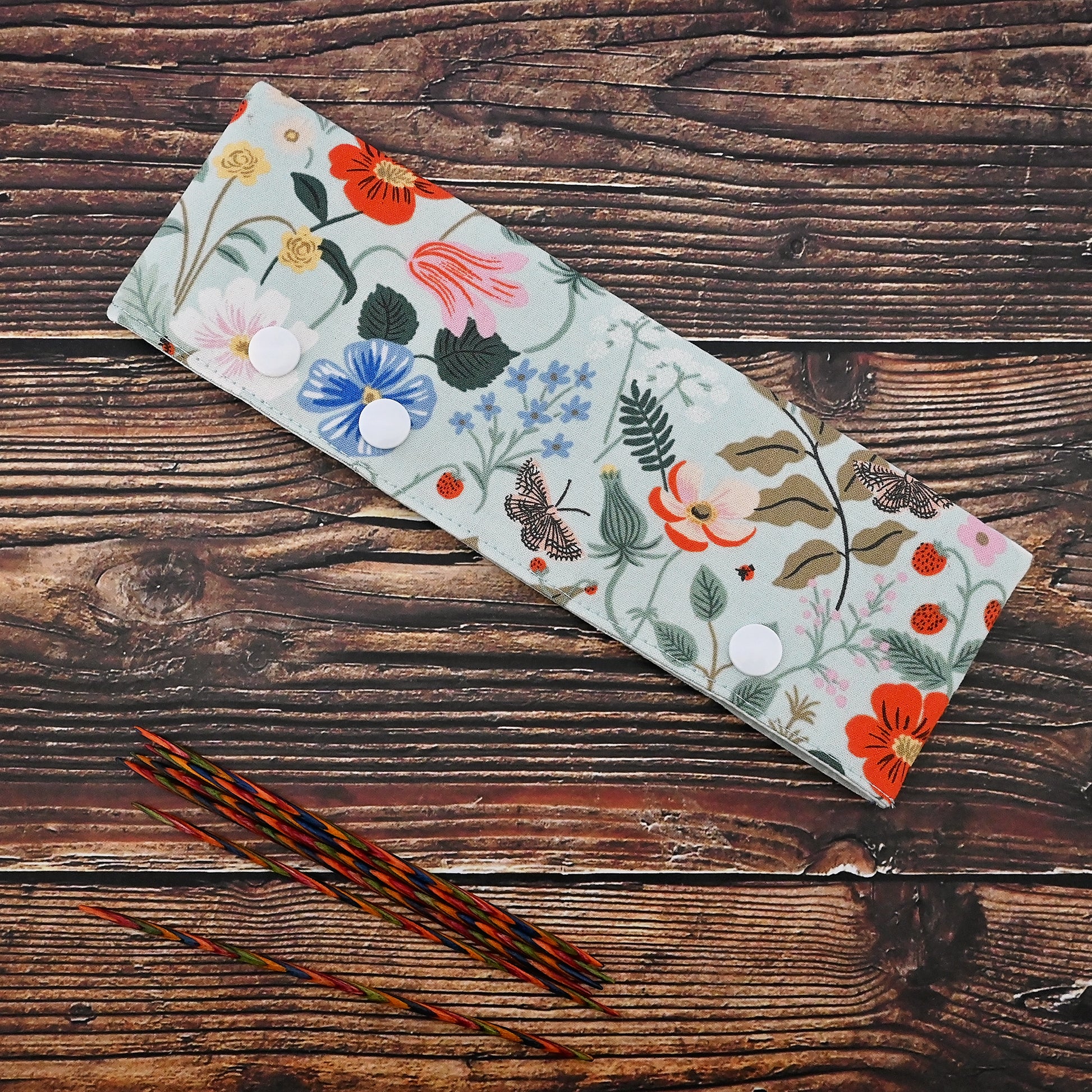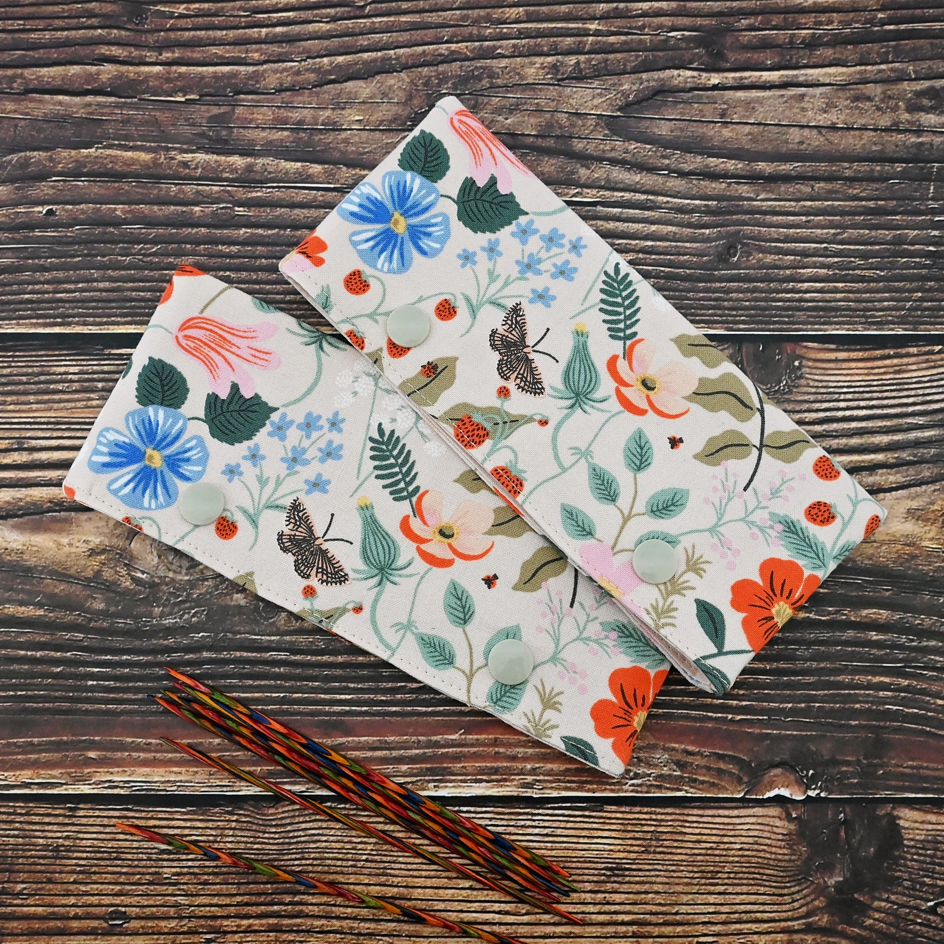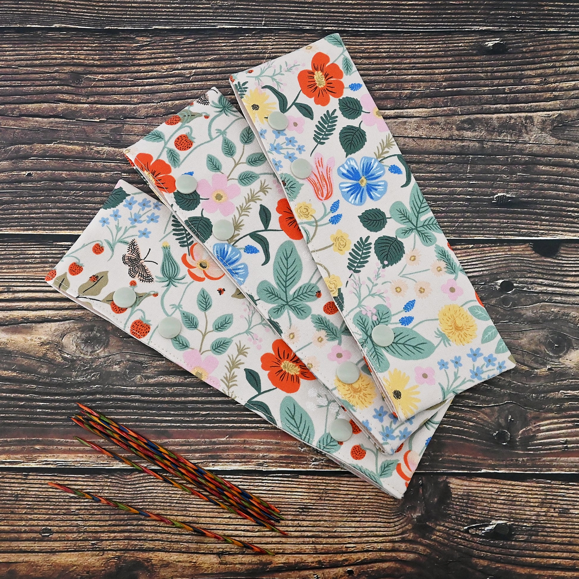 These cozies are perfect little WIP holders for DPNs or circular needles. They secure your work and keep it from slipping off your needles. These work well for small projects on DPNs, keeping everything in place while you're transporting your project. They're also are great for keeping your larger projects on circular needles safe and secure - just pop your needles in the cozy when you've finished knitting and snap it closed to keep everything in place.