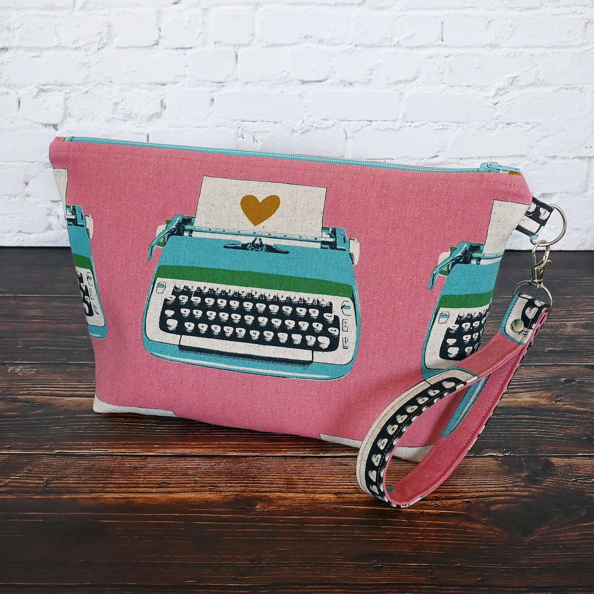 This fun canvas project bag is made from a really cool vintage typewriter fabric and is lined in a fun typewriter cotton from the same collection. Perfect for socks or other small projects, but you could also use this bag for pretty much anything! It features a removable strap and doesn't have any pockets, making it a great 'stow and go' bag.