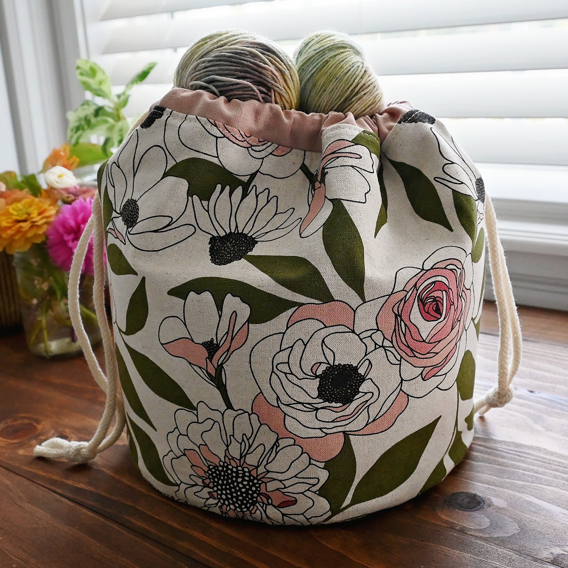 Fabrics: The exterior of this bag is made from Moda's Paper Rose canvas from their Botany collection, paired with a rose linen drawstring casing. The interior is lined with a pretty rose coloured cotton with metallic details by Cotton + Steel.