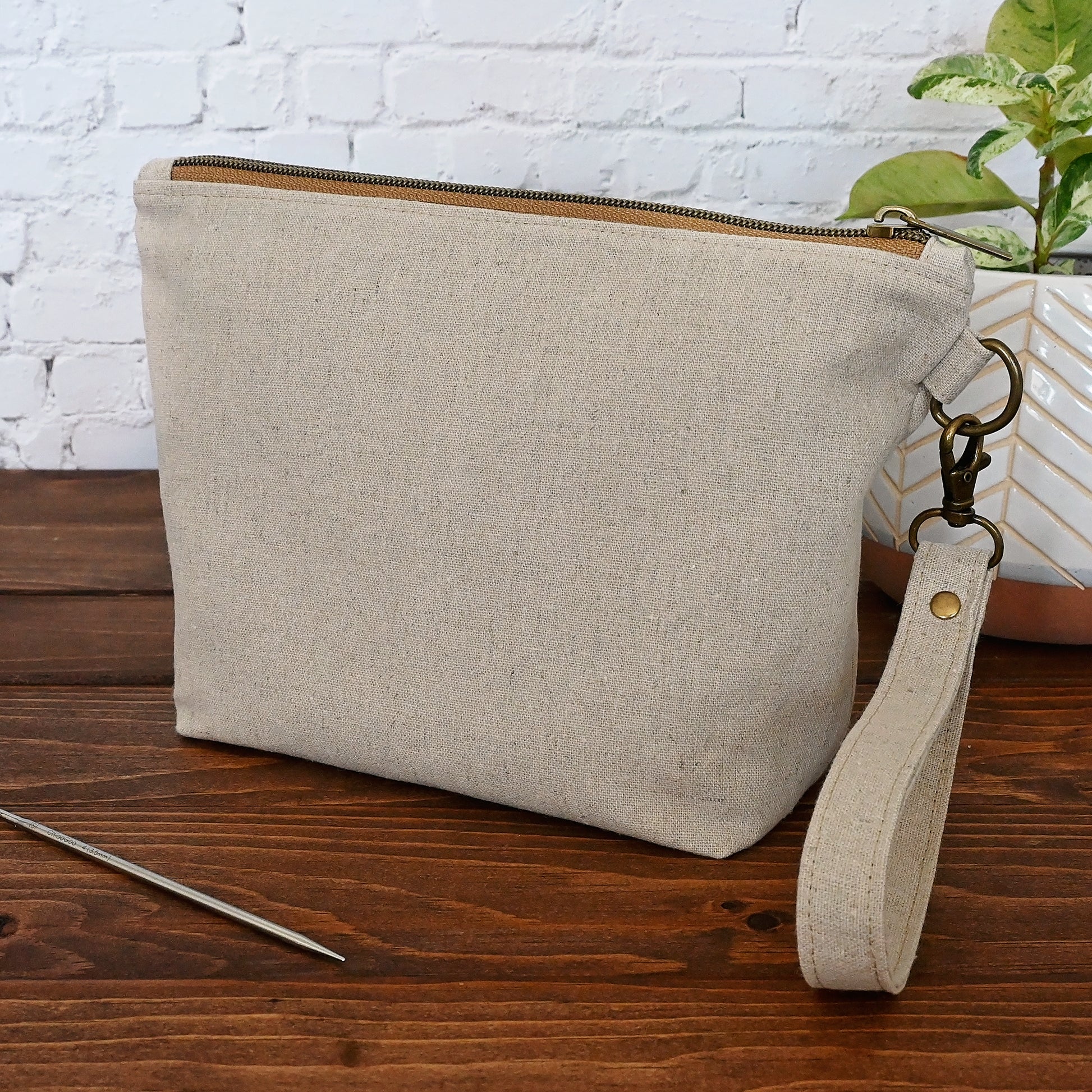 Great for sock projects or other small knits, it measures approximately 7" x 9" with a 3.5" boxed bottom.