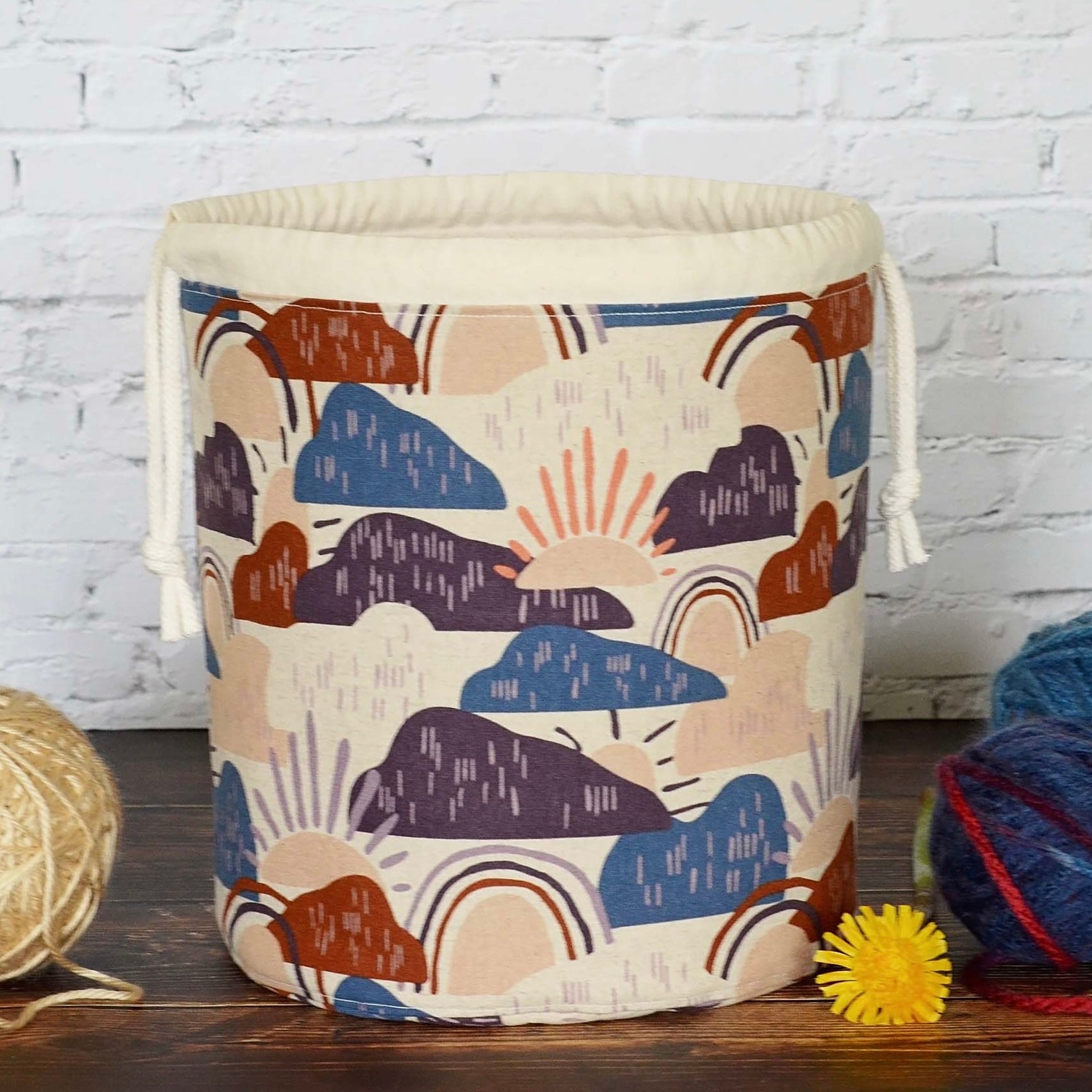 Rainbow Canvas Bucket Style Knitting Bag with Pockets