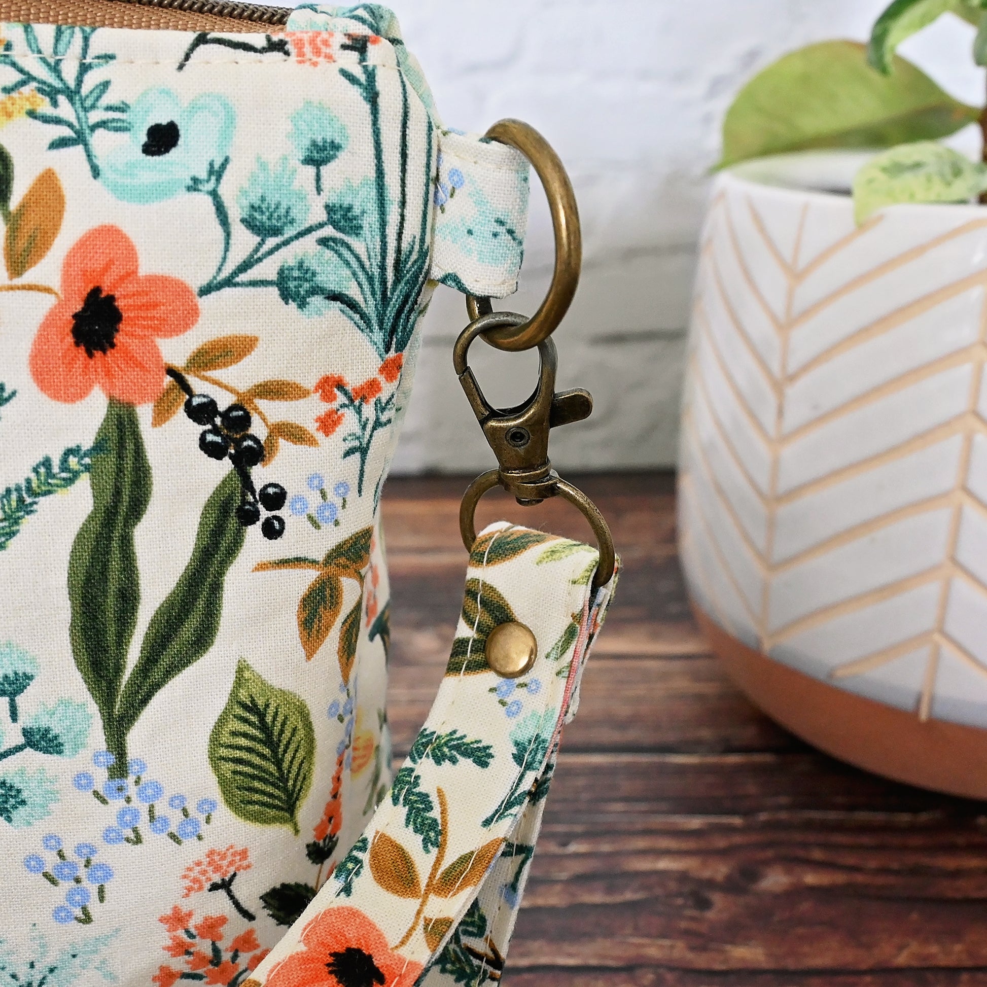 This bag is made from Rifle Paper Co's Amalfi collection and is lined with a pretty pale green from Dear Stella's Moonscape collection. 100% cotton.