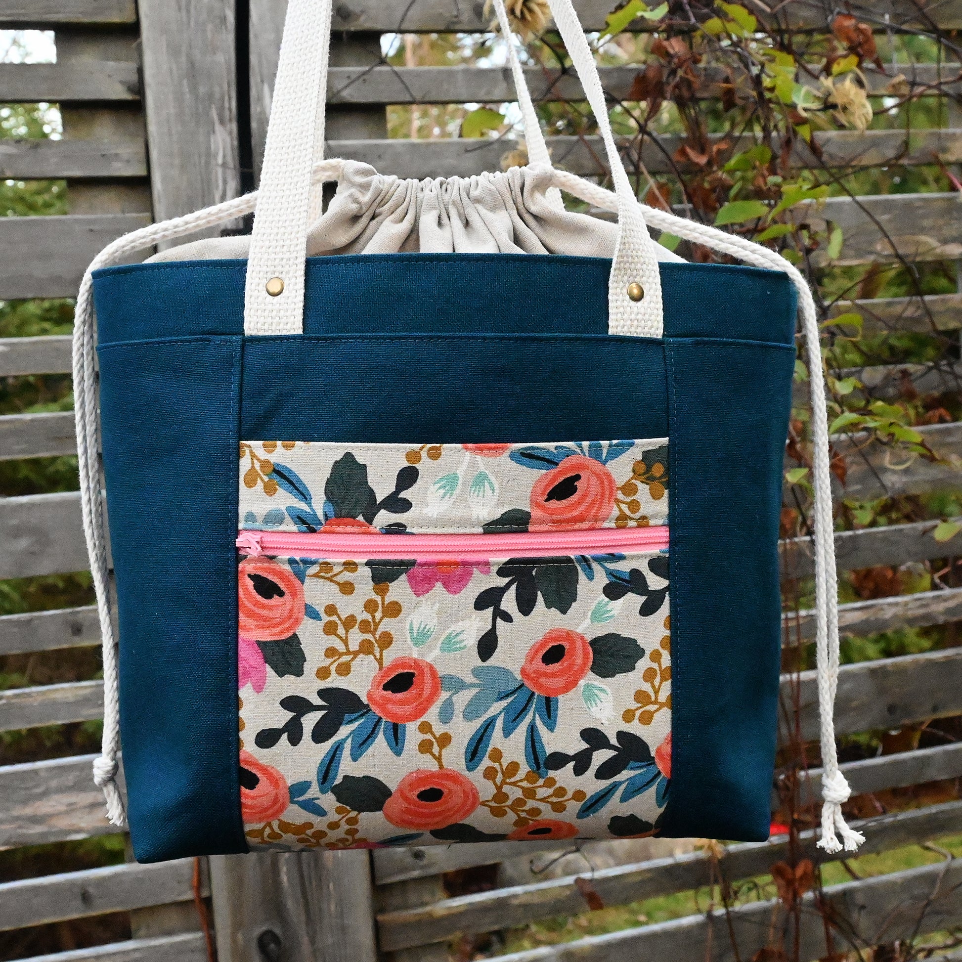 The Teal Rosa Project Tote is thoughtfully designed for makers who love both fun and function. The exterior is made from a sturdy teal cotton canvas and paired with a striking print in Rifle Paper Co's Les Fleurs Rosa Natural canvas.