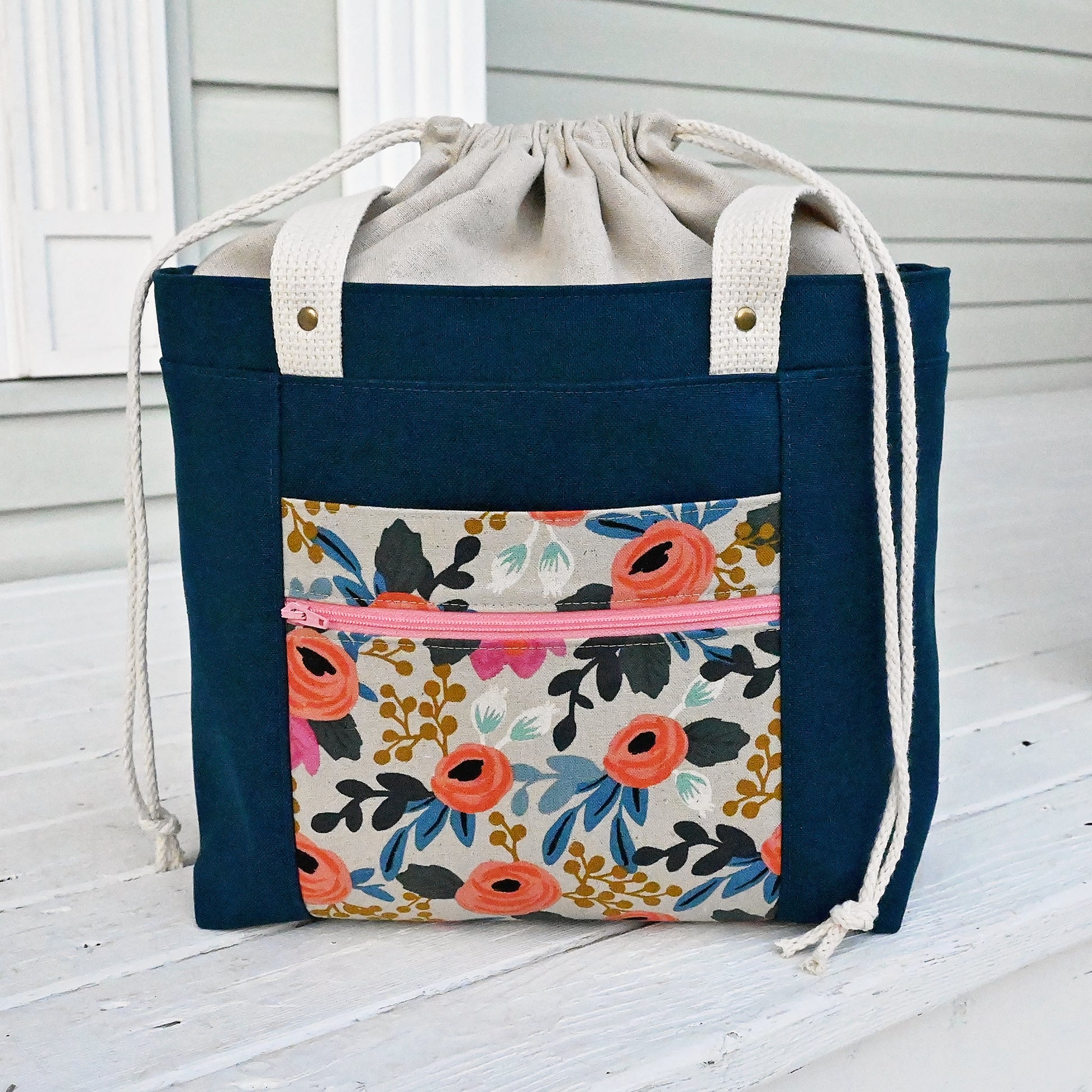 *This tote is an adaptation of Noodlehead's Firefly Tote. I've made a medium sized tote - between her large and small sizes, and added several convenient knitting specific pockets.