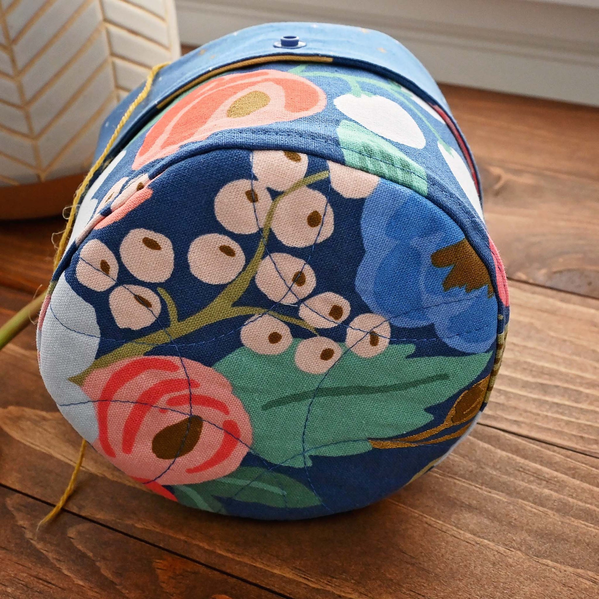 These handmade yarn cozies are thoughtfully designed specifically for centre-pull yarn cakes or balls, helping prevent them from collapsing and tangling. A snap closure at the top keeps the yarn cake securely contained while allowing your working yarn to pull through, snag free. These also have a quilted bottom, just like my bucket bags, and canvas exteriors which add structure and stability.